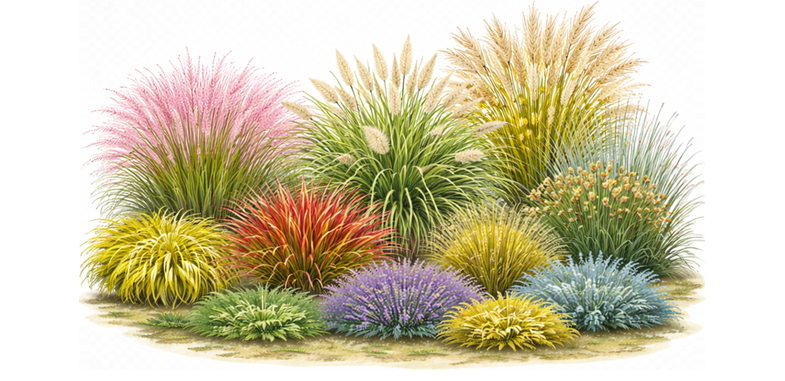 Pink Muhly has thread-like, Dark Blue-Green foliage, supporting the blooms from September to November